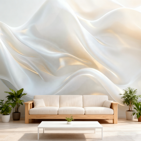Papel pintado con textura satinada de seda blanca, Mural de flujo de tela lujosa para dormitorio moderno, vestidor Glam, decoración minimalista